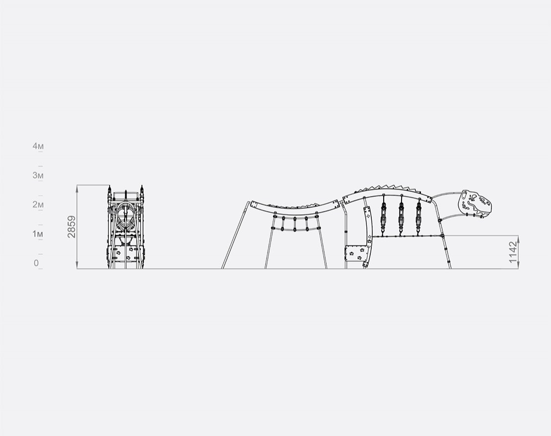 Канатная конструкция серии Lago. Представляет собой конструкцию в форме динозавра.