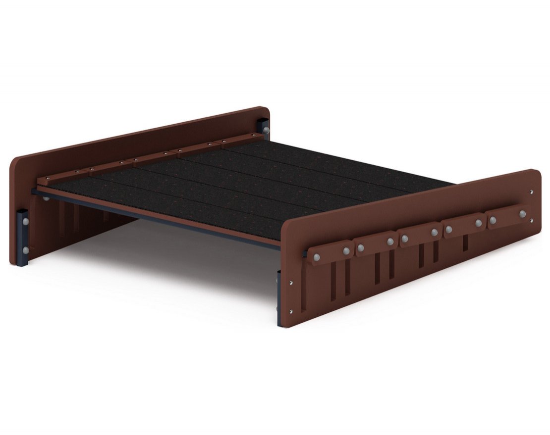 Барьер для прыжков в длину регулируемый для собак. Прыжок в длину собака осуществляет через несколько восходящих параллельно расположенных платформ, не задевая туловищем или лапами ни одну из них. Прыжок в длину состоит из 5 элементов, суммарная длина составляет 150 см. Элементы прыжка в длину устанавливаются в восходящей последовательности, от самого низкого элемента до самого высокого.