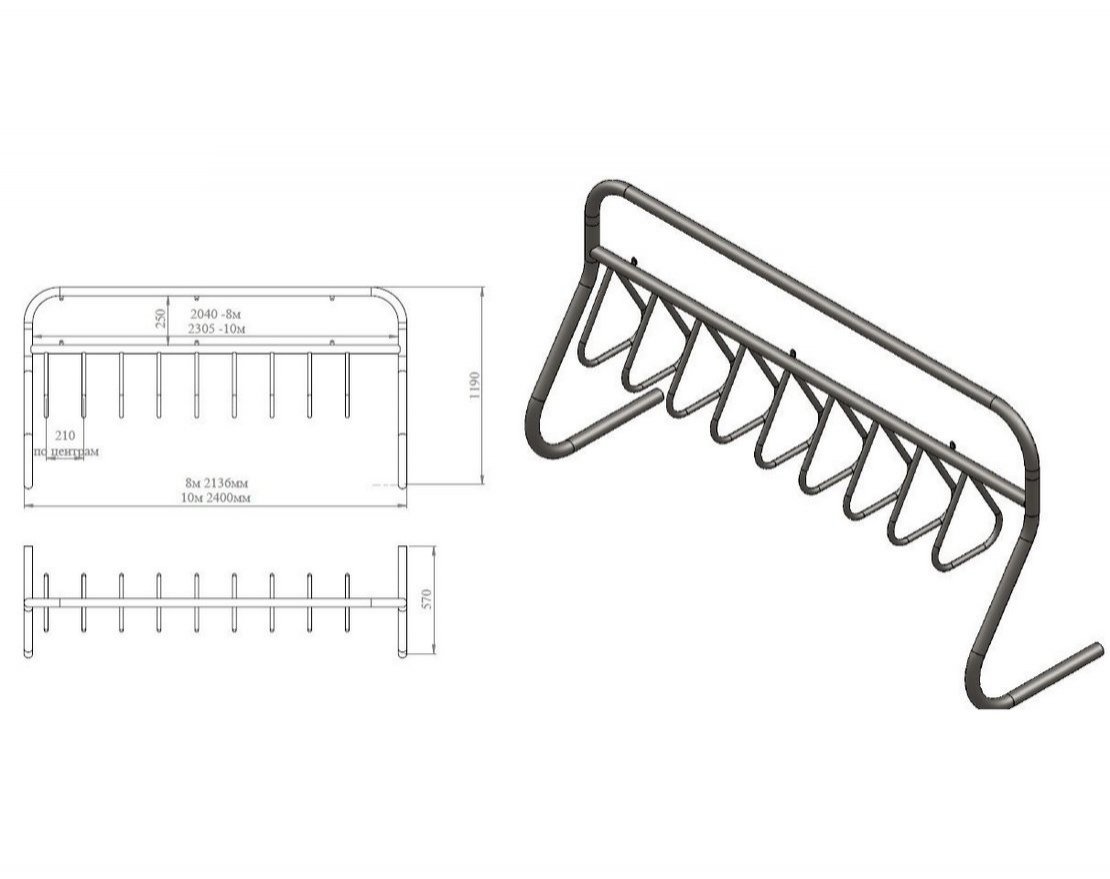 При изготовлении велопарковки на разное количество мест параметры длины:
