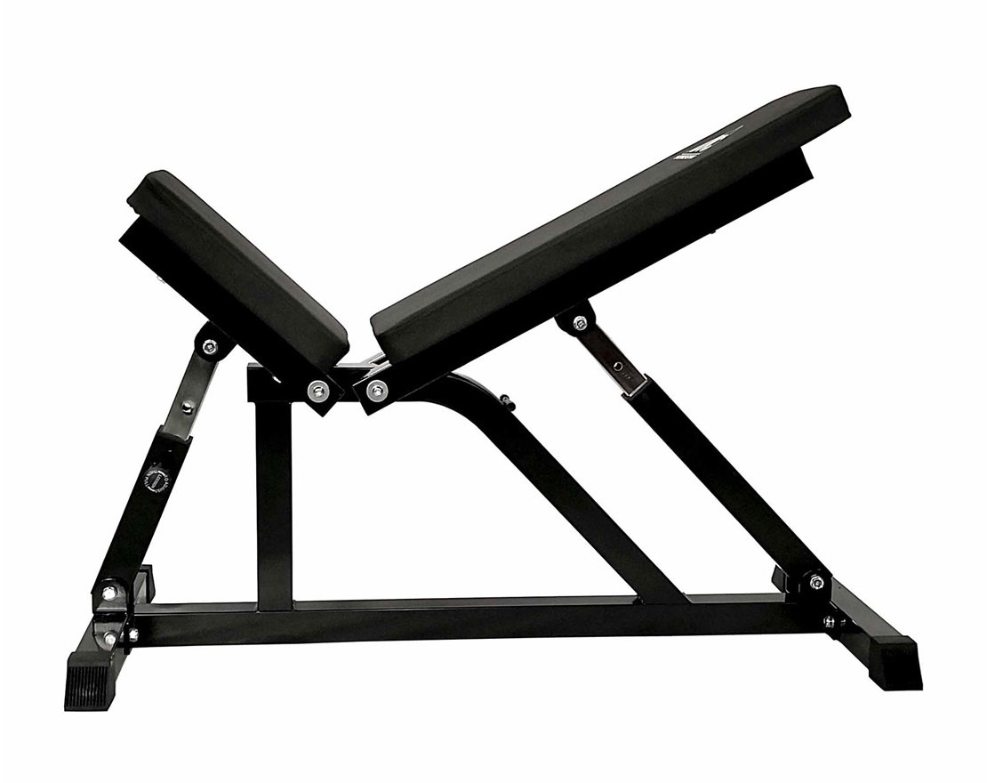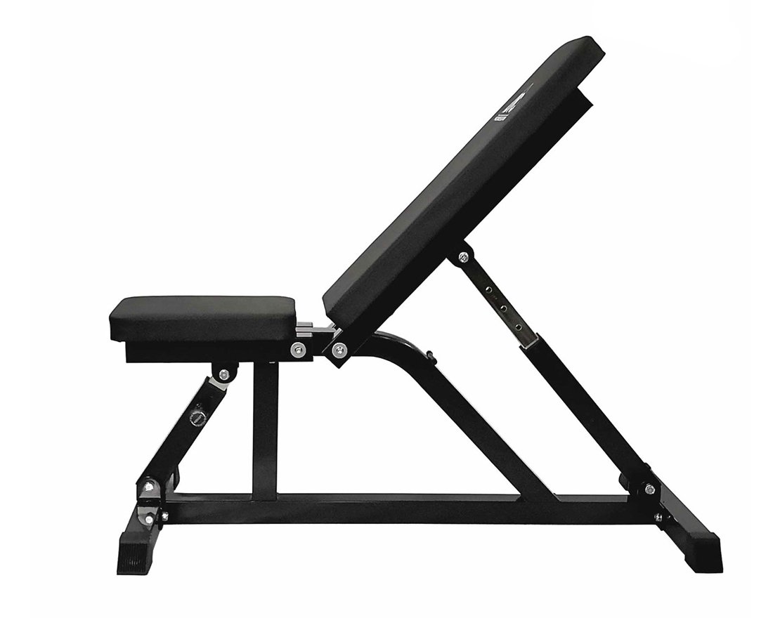 Сиденье и спинка скамьи регулируется по углу наклона в широком диапазоне. Фиксация в нужном положении с помощью удобной подпружиненной ручки.